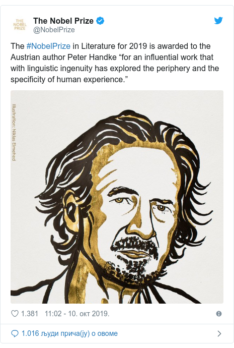 Када је наш пријатељ (а иначе панкер у књижевности, политици и животу, како је Биљана Србљановић то рекла као "аргумент" противу њега, а што највише говори о њој) Петер Хандке добио Нобелову награду за књижевност, кренуле су приче како га Срби не читају, како то виде само политички (а и он сам једном рече да га овде не читају иако га због политике цене, па је и то био неки "аргумент").